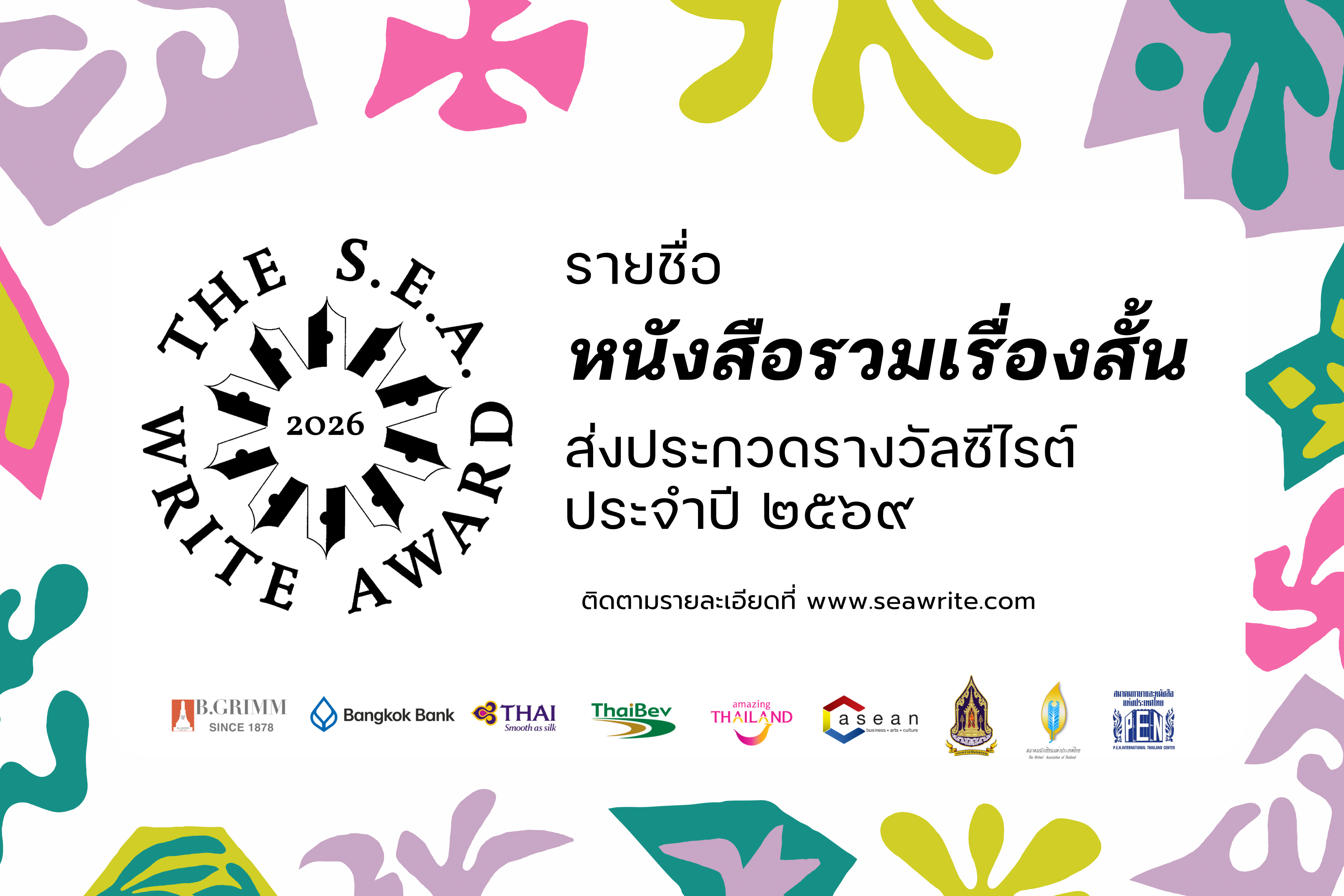 เชิญส่งผลงานวรรณกรรมประเภท “รวมเรื่องสั้น” เข้าประกวดรางวัลซีไรต์ ประจำปี ๒๕๖๙